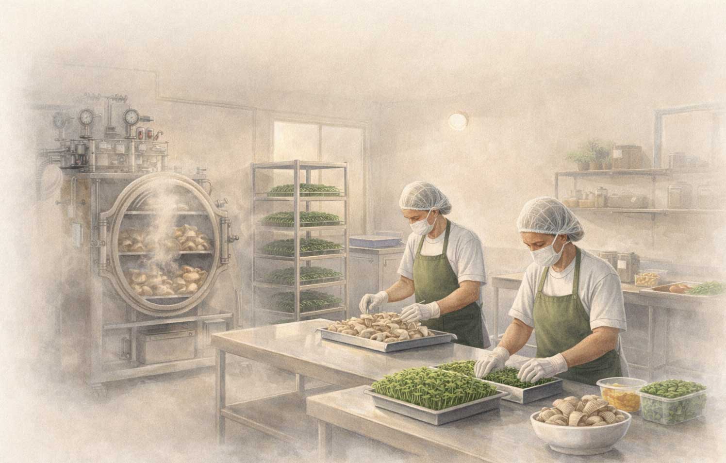 Temperature, humidity and airflow are monitored so mushrooms grow slowly and naturally, without shortcuts.